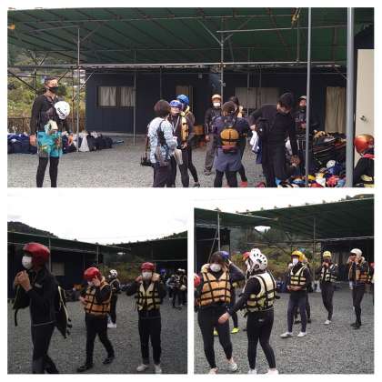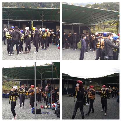 先生も着替えてます。その後、バスで移動です。