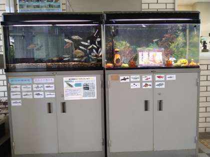 昨日、水槽の反対側の壁に大型TVモニターが設置されました。