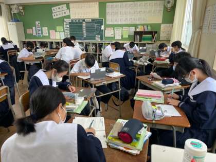 昨日の調べ学習をまとめたものを、グループ内で発表し、意見を交流しています。