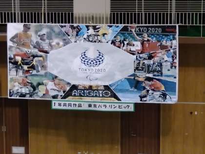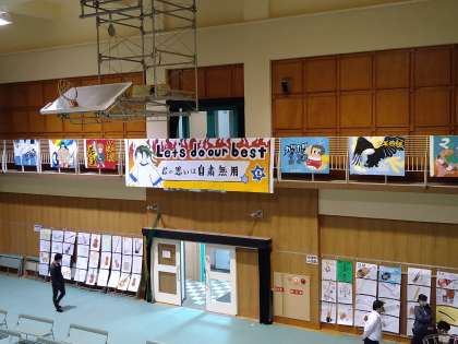 写真は、体育館の展示の一部です。多目的室にも、技術室にも、格技室にも、たくさん展示されています。