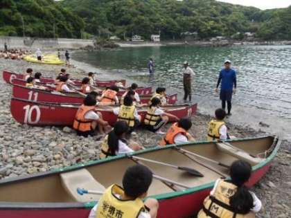 男女混合5〜6名のチームに分かれてカヌーに乗りました。