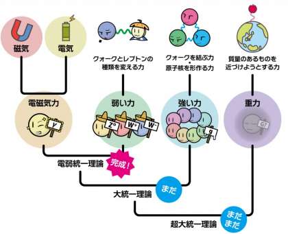 ちなみに、物理学では下の図(higgstan.comより転載)のように、基本的な力は四つとされています。興味のある人は調べてみてください。