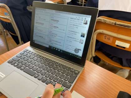 資格が必要な職業について、一人一台端末を使用して調べています。