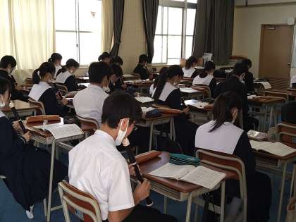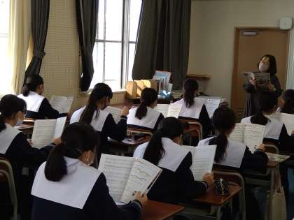 『音楽』の授業です。「エーデルワイス」をアルトリコーダーで演奏し、「夏の日の贈りもの」を合唱しました。