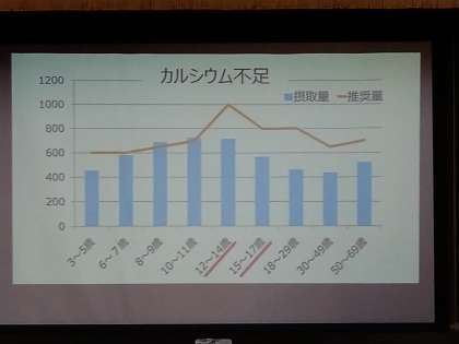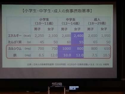 中学生の時期に必要とするカルシウムと鉄分の摂取量に達していないことがクラブから読み取れます。