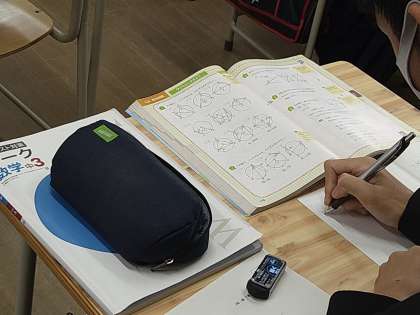 担当の先生は、演習問題の時は机間巡視で生徒一人一人丁寧に指導されていました。