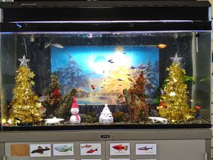 玄関の水槽が『クリスマスバージョン』になっています。