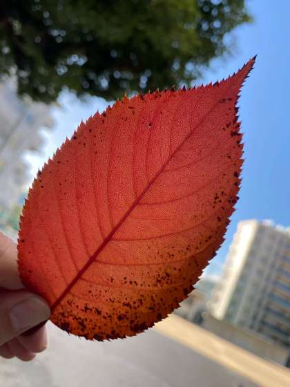 光に透かしてみると、葉脈がよく見えます。