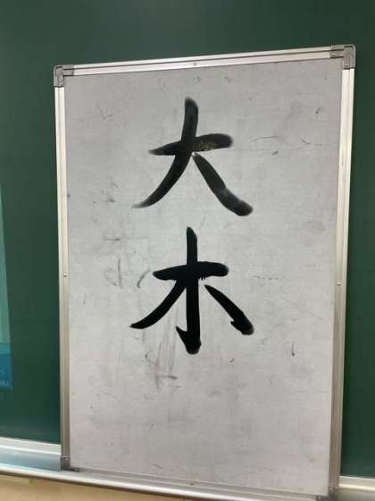 本校の水書板は、水に対する反応が弱く、アルコールの方が発色よく字が書けるため、指導の際は筆に消毒用アルコールを含ませて書いています。