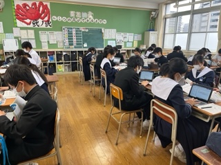 英語の教科書を読みながら、その内容をまとめたプレゼンテーション資料を作成しています。