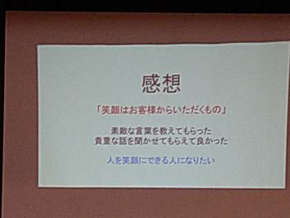 「笑顔はお客様からいただくもの」という素敵な言葉を教えていただいたようです。