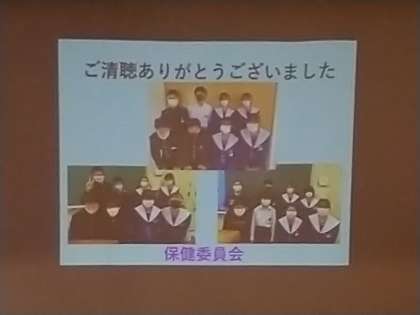 「保健委員会の皆さん、ご苦労さまでした!」「とても分かりやすい説明でした」
