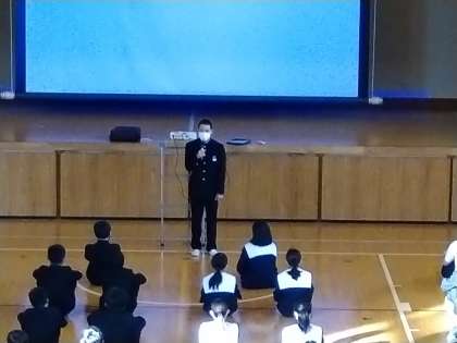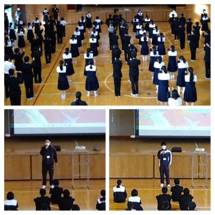 保健委員会からの「良い睡眠をとろう」という12月の目標の説明に続いて、委員長会から「チャレンジテストも間近に迫っています」「自分自身の将来のためにも先を見据えてしっかりと勉強しましょう!」というお話がありました。
