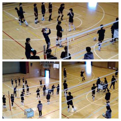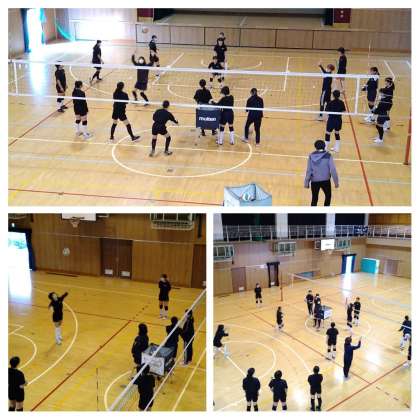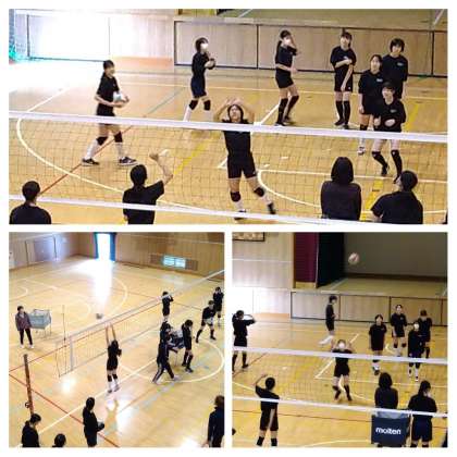 今日からバレーボール部の活動が開始です!部員はみんな元気で頑張っています。ユニホームがオールブラックスみたいで強そうです。「いや、強いです!」