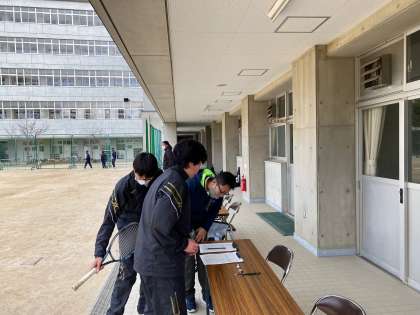 また、春の大会に備えて、顧問の吉本先生から、審判用紙の書き方を丁寧に教えて頂いています。