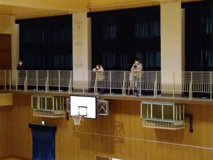 体育館2階のギャラリーからは、ビデオカメラを片手に保護者の皆さんの“あたたかい応援”がありました。