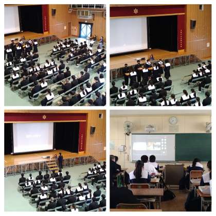 コロナウイルス感染症対策のため、残念ながら対面で行うことはできませんでしたが、生徒会が中心となり考えてくれた結果(リモートにより体育館と教室をつないで)、感動の『お別れ会』となりました。