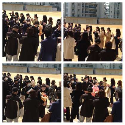 『卒業証書授与式』が終了し、保護者の皆さん・在校生の皆さんでつくる花道をくぐって新しい社会に旅立ちました。