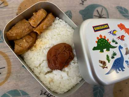 早朝に気付き、あわただしく5分でお弁当箱に詰め込んできた、投稿者(職員)のお弁当です。