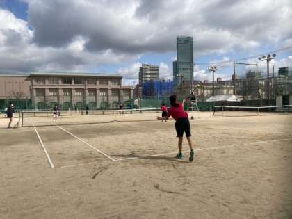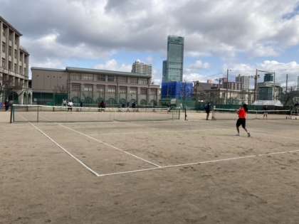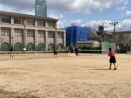 本日、大阪市春季総体団体戦が行われています。写真は1回戦、豊崎中学校との様子です。