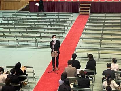 入学式閉式後、学年主任より保護者の方に挨拶とお話がありました。