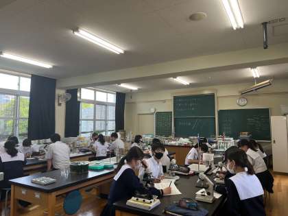 オオカナダモの葉を顕微鏡で観察、スケッチしました。
