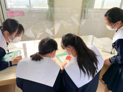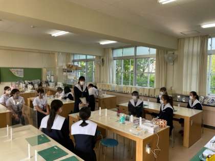 家庭科部での仮入部の活動様子です。レジンでの製作をしました。先輩に丁寧に教えてもらいながら、とても素敵な作品を作ることができました。