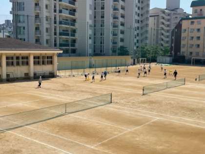 午後からは、体育館ではバレー部、グラウンドでは男子テニス部が活動しています。