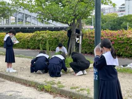 大川の河川敷へ植物の観察へ行きました。