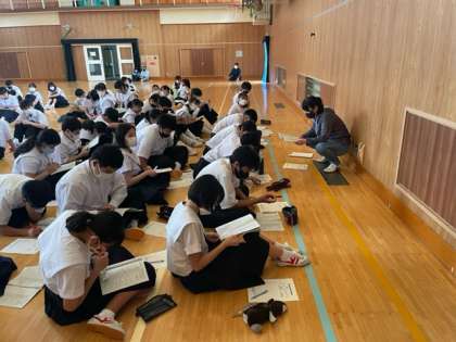 今日は5・6時間目に全クラスが体育館に集まり、持ち物の確認や係に分かれての打ち合わせを行いました。写真は係打ち合わせの様子です。