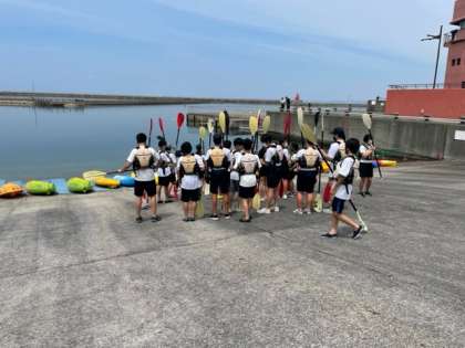 カヌー組はパドリングについて教えていただいてます。