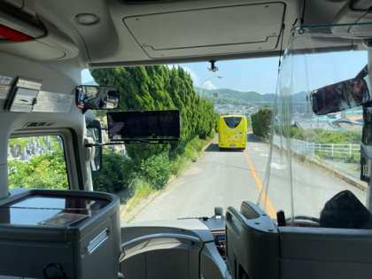 先ほど淡輪を出発しました。1時間ちょっとバスに揺られ、北稜中学校に戻ってきます。