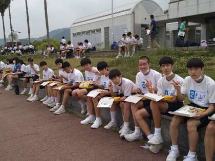 修学旅行 多々羅大橋しまなみ公園での昼食