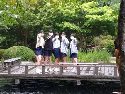修学旅行 宿舎のお庭にて