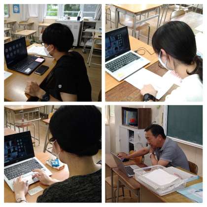 どの学年もスムーズに行えたようですが、2年生の男子生徒が覆面で画面上に現れるという場面もありました。