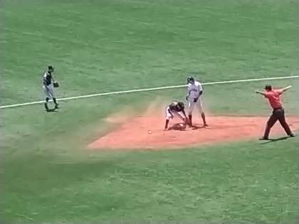 キャッチャーからの強い送球がありましたが、相手の足の方が僅かに早かったようです。