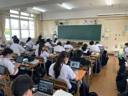 『世界各地の衣食住とその変化』について学習者使用端末を使用して調べ学習をしています。