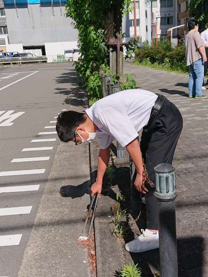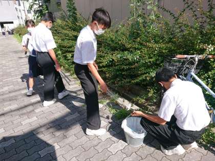 美化委員会の有志で、通学路の清掃活動を行いました。