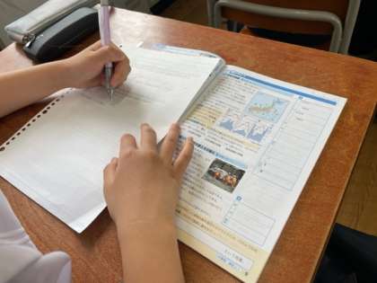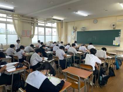 教室内では、明日から始まる期末テストに向けて最後の追い込みが行われています。