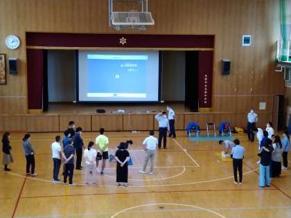 主に『胸部圧迫(心臓マッサージ)』と『AEDの使い方』について学びました。「先生も勉強です!」