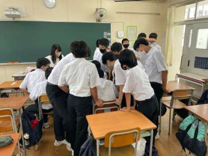 今日は各クラスで体育委員を中心にしてそれぞれの出場種目を決めています。