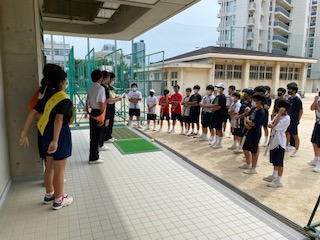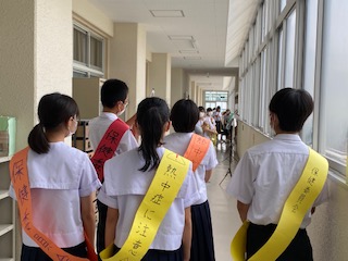 懇談期間中の1週間、保健委員が午後2時から、校内で部活動にをおこなっている人達に、その場所の気温、湿度、熱中症指数を知らせて、熱中症予防を呼びかけて回ります。