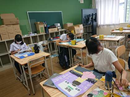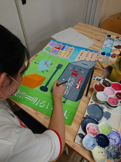夏休みから始めた『大阪市明るい推進選挙ポスターコンクール』の作品制作。