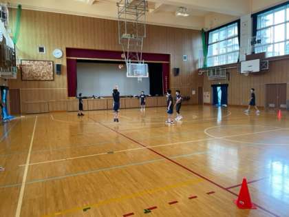 写真はシュートゲームの様子です。楽しみながら練習に取り組んでいました。