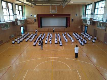 今朝は、1年生の学年朝礼がありました。まずはじめに、担当の先生から夏休み明けの最初の学年集会でありましたが、予冷前に集合ができていたことにお褒めの言葉がありました。