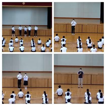その後、情報委員会より『情報リテラシー』を高めるクイズがあり、続いて生活委員会より「夏休みに乱れた生活リズムを元に戻そう」と呼びかけがありました。