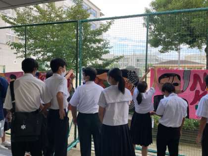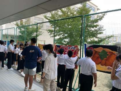 委員長が学級旗を朝早くから掲示してくれています!