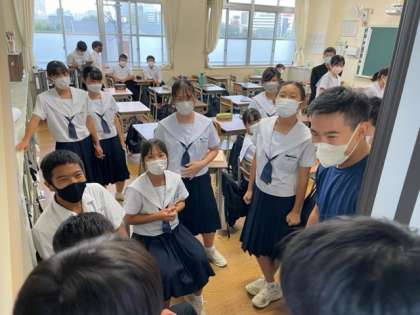 雨でグラウンドが使えないため、教室で過ごしています。