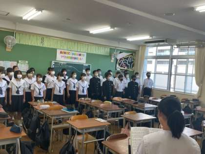 教室での合唱練習は2回目ですが、どのクラスも1回目より歌声がそろっていました。
