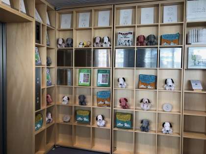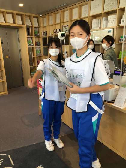 こども本の森 中之島での体験の様子になります。 来館者受付をしています。